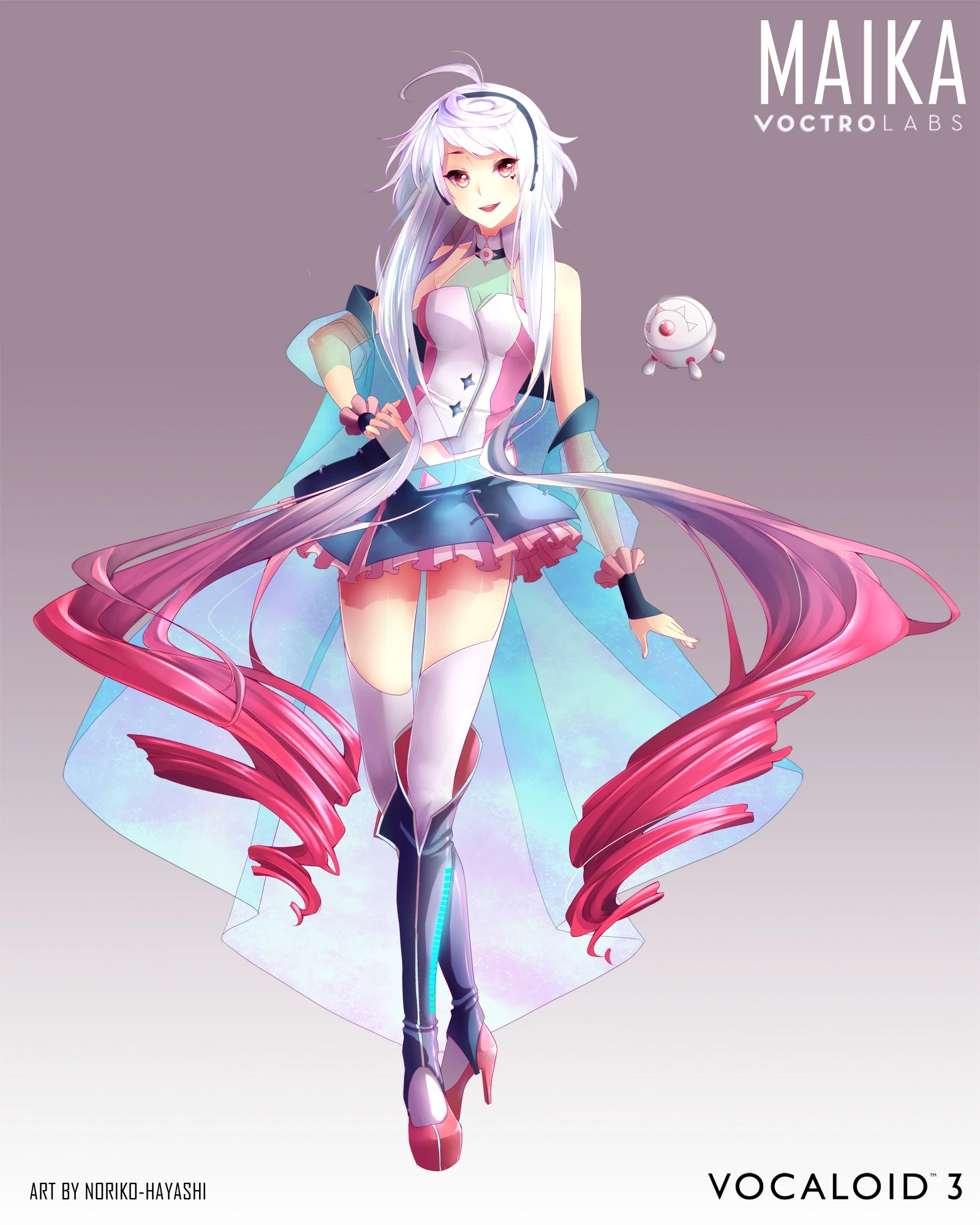 Konzept[]MAIKA stellt eine Pop-Diva dar. Sie hat ein Play / Pause-Tattoo (▶ ll) auf ihrer linken Wange. Sie hat einen kleinen Droiden, der sie als Haustier, Mikrofon und Lautsprecher begleitet. Am 16. Oktober wurde auf MAIKAs Facebook-Seite eine Umfrage gestartet um dem Droiden einen Namen zu geben. Später, am 22. Dezember wurde erklärt, dass der Gewinnername „Nova" ist. Maika sollte so reif wie Meiko aussehen, jedochfand man, dass MEIKO Design ein wenig schlicht ist, und so Noriko Hayashi gestaltete sie mehr wie Lady Gaga. Ihre Haarfarbe ist ein Gradient von Pfirsich bis hellrosa. NOVA wurde geschaffen, um ihr Design von anderen Vocaloids abzuheben. Das Design selbst hat keine Anlehnungen an die spanische Kultur, um rassistische Klischees zu vermeiden.