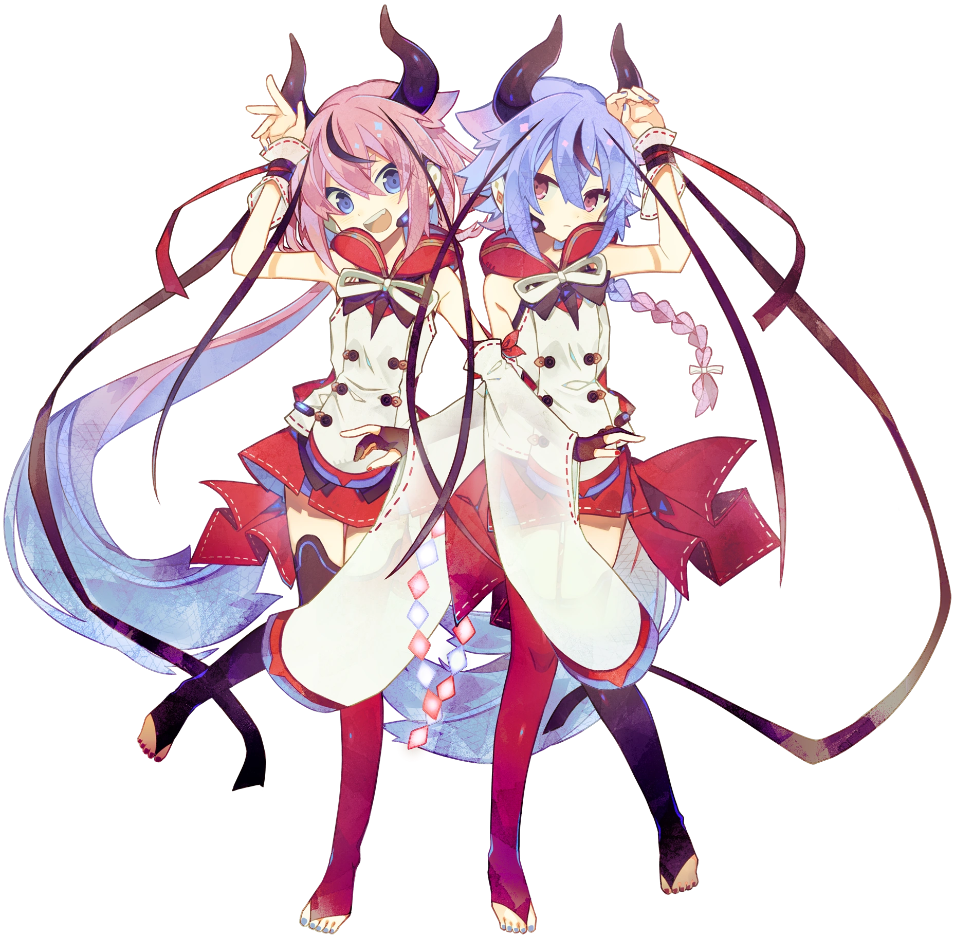 Quand ils furent questionner à propos du sens de leur couleur de cheveux, Gynoid répondit qu'ils ne pensaient pas qu'il y ait un sens particulier, et que c'était à l'illustrateur de répondre à cette question.[5] Leur couleur de cheveux peut cependant faire penser aux Aka-Oni et Ao-Oni, du folklore japonais, un duo de personnage opposés l'un à l'autre au niveau de leurs personnalités et actions.[6]