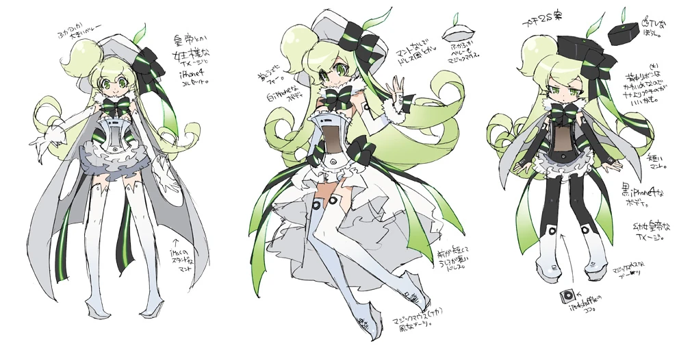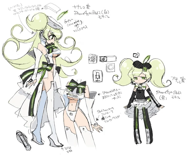 Jej pierwszy wygląd był głównie inspirowany Hatsune Miku, jednak 2S już został przekierowany w temacie "księżniczki". Ogólnie wygląd dla serii Macne uwzględnia różne aspekty komputera Mac, takie jak port USB, stacje dysków lub przenośnego urządzenia jak iPod.