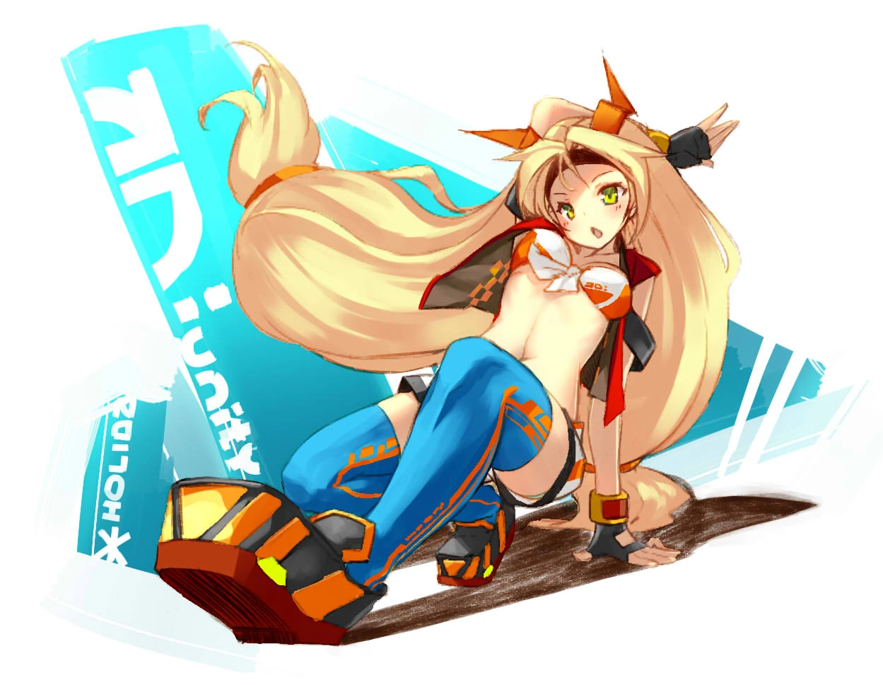 Jej debiutancki oryginalny strój to niebieska bluzka z długimi rękawkami i czarno pomarańczową kamizelką. Kamizelka ma pomarańczową szachownicę na boku z napisem "Unity" pod nią. Ma także pomarańczowe w paski zakolanówki oraz czarne buty. Jej włosy są podzielone w swego rodzaju dwa kucyki.
