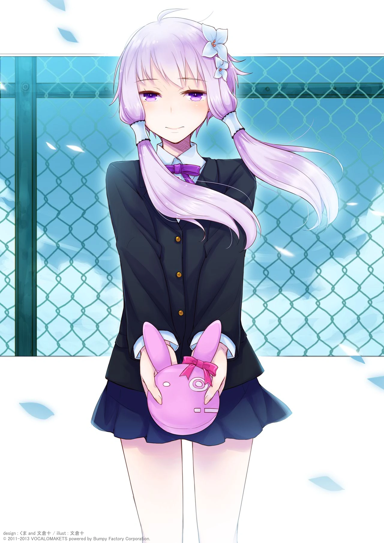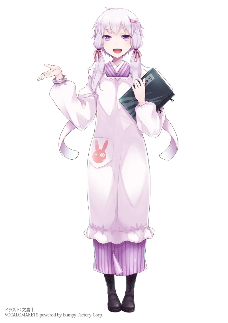 Designy Yukari na opakowaniach VOICEROID+ a Vocaloid3 różnią się tylko tłem oraz kapturem z króliczymi uszami który Yukari ma na głowie.