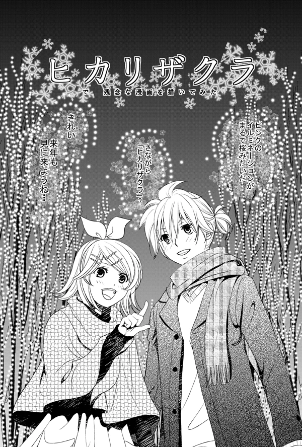 Rin and Len have been separated for half a year, Len having gone away. One day Rin recieves a text from Len telling her to meet him under the clocktower 08:30 pm on Christmas Eve. She replies that she will and goes to meet him. Unfortunetly, they wind up waiting at the opposite sides of the tower. Len wintesses Kiyoteru waiting for someone and they both cheer eachother up. Rin also witnesses Meiko having waited for a long time and decides to wait with her, only for her boyfriend Kaito to come running into her and apologizes for making her wait, and the heartwarming reunion makes Rin feel all the lonlier. As time passes, Rin and Len try to walk around the clocktower to check for the other but barely miss each other, and the more they wait the more they feel separated.