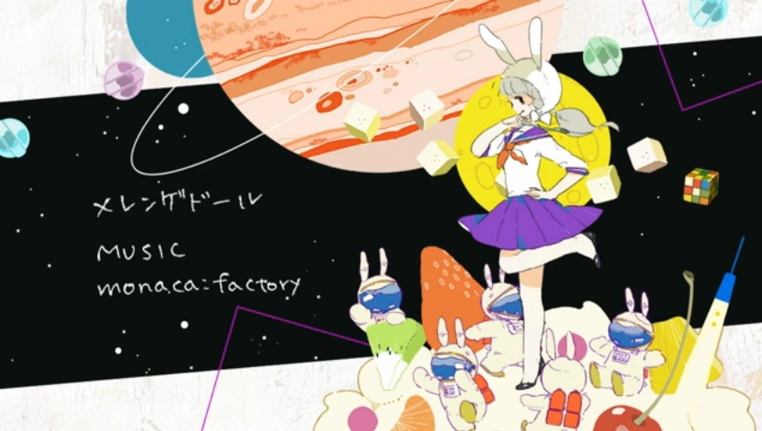 "Meringue Doll" is an original song produced by monaca:factory featuring GUMI. monaca:factory would later upload a new remastered version of the song in July 2024, titled "2024 Guitar Arrange Ver.", which also serves as a demonstration song for galaco's VOCALOID6 voicebank, specifically her BLACK voicebank.