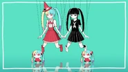 "Fake meme" is an original song produced by Pinocchio-P featuring Hatsune Miku. The song tells of a girl who masks away her true self and puts on a persona in an effort to gain engagement from others. The girl is dressed up as a marionette in the PV, presumably as a metaphor for how her lie has taken control of her.