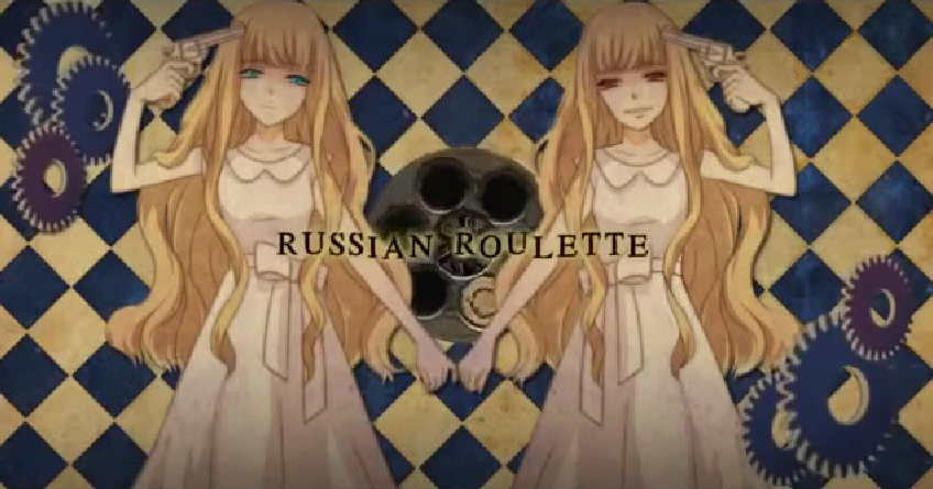 "Russian Roulette" is a song about two girls who are in love with a man, but they both realize their two personalities exist in one body, Guilt (The red-eyed girl) and Innocence (The blue-eyed girl). So the man proposes Russian Roulette in order for one of them to fall in love with him. Then one of the personalities wins, shoots themself, and falls over dead (Guilt). At the end of the song, the one remaining (Innocence) personality follows and leaves a lingering impression of suicide. This song is connected to Death Penalty.