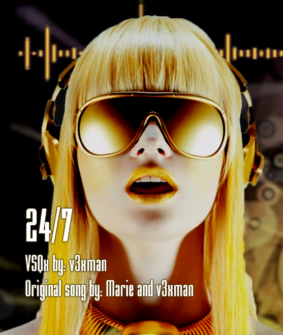 "24/7" is an original English VOCALOID song featuring CYBER DIVA. It is one of v3xman's first original songs, and first attempts at an electronic song. The producer mentions how easy the voicebank is to use, having mixed into the music very easily and fit well with the overall sound of the song.