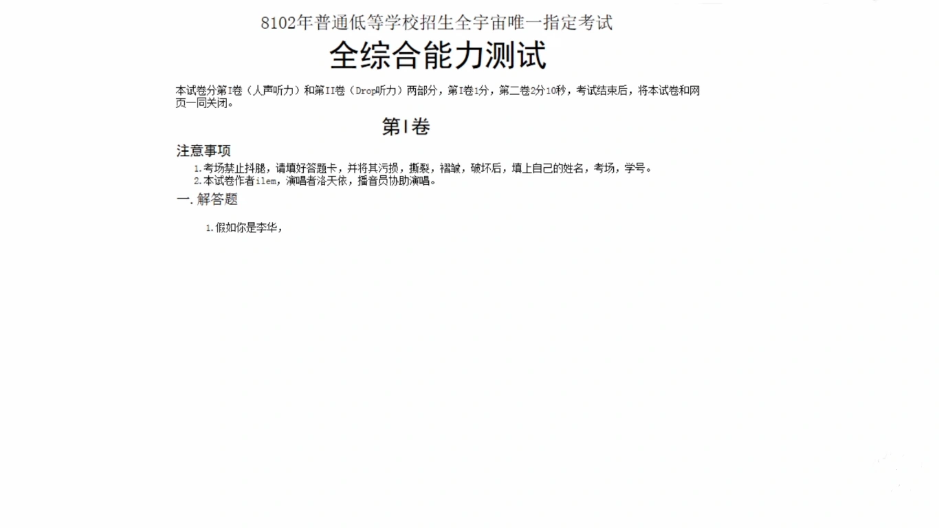 | 注意,回答听力部分时,请先将答案标在试卷上。 | Zhùyì, huídá tīnglì bùfèn shí, qǐng xiān jiāng dá'àn biāo zài shìjuàn shàng. |