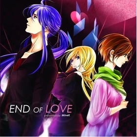 "End of Love" is MineK's seventh album. It features 15 tracks, 10 of which feature the vocals of mostly Camui Gackpo and MEIKO, but also Lily, Megurine Luka, and Ryuto, while track 11 is a voice drama, and the last four are instrumentals tracks. The theme of the album is "farewell".