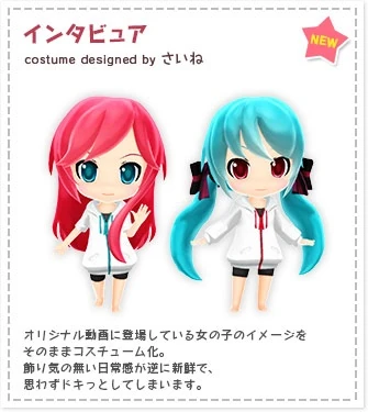 Luka and Miku's costumes for the game Hatsune Miku Project mirai 2, designed by Saine.