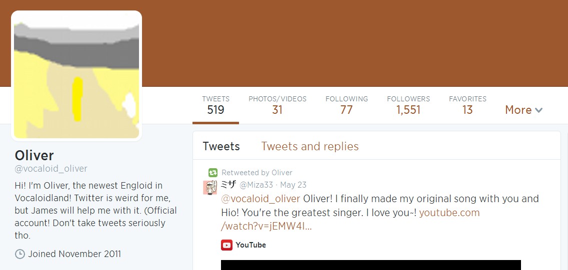 | English | Oliver @vocaloid_oliver The official Twitter account for VOCALOID OLIVER | Link |