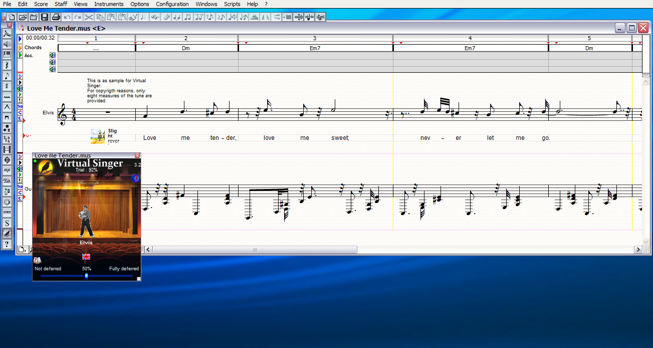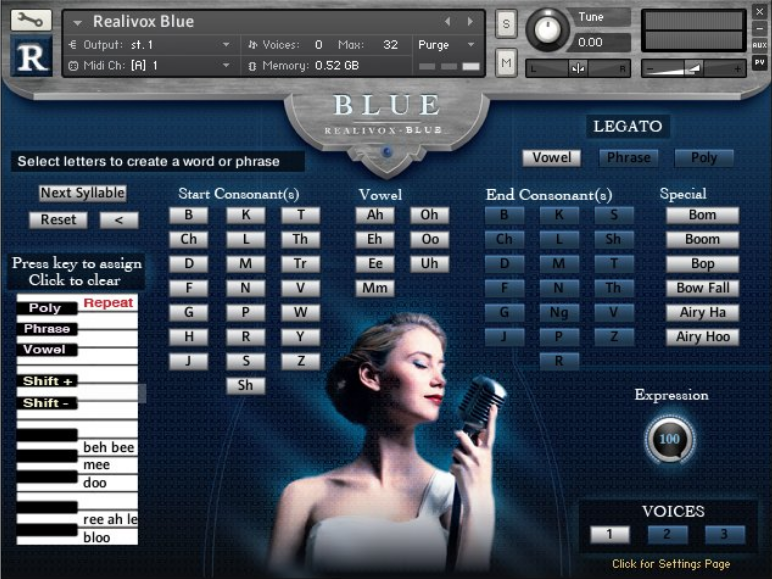 Unlike VOCALOID, it had 50 voices for use, which was far greater than what VOCALOID had to offer upon its release. But because of its design it was more intended to resemble a virtual instrument than a virtual singer. It had capabilities for both German and English, and supported both Windows XP and Mac OS X, as opposed to VOCALOID which was restricted to just Windows XP. However, similar to VOCALOID, it worked as either a stand alone or plug-in and supported ReWire.