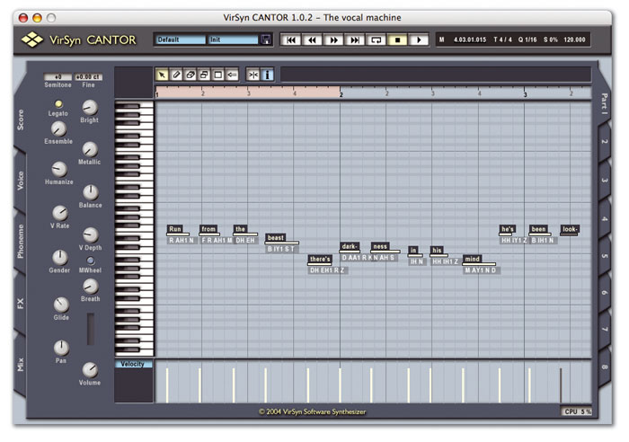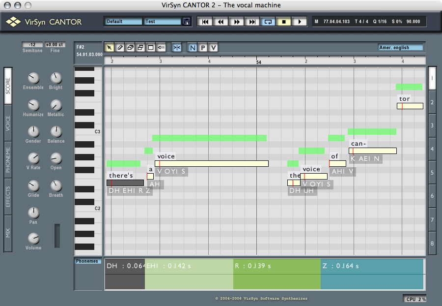 Unlike VOCALOID, CeVIO or other synthesizers words are typed as sentences. If used as a plug-in into a DAW, the synthesizer will play each sentence in the keyboard. The software is easy to use but requires some work to master.