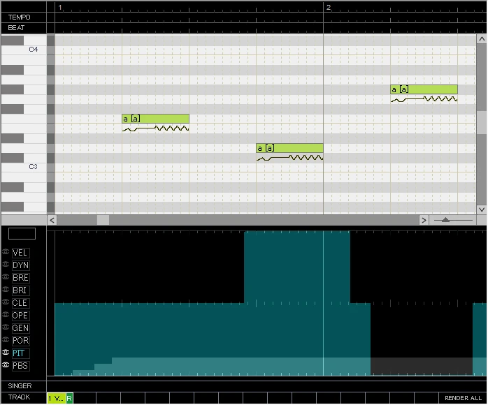 In VOCALOID4, this parameter is easier to use with the aid of the 'Pitch Rendering' feature.